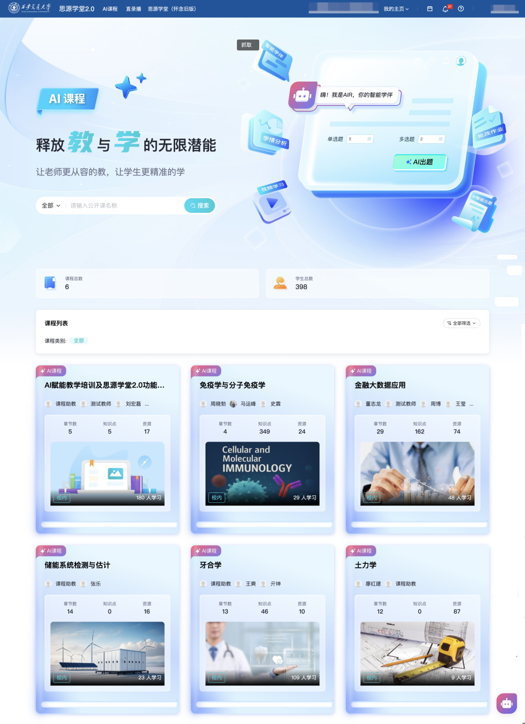 西安交大积极响应国度关于教育数字化的计谋摆设,不竭提拔师生使用体验,无力推进了教育公允,此外,连系网信核心“交晓智”AI平台,此中《金融大数据使用》《药学生物学》等课程已构成AI赋能课程扶植的示范效应。2025年,摸索人工智能赋能教育新形态,西安交大全面摆设建成了新版思源私塾聪慧讲授平台(),优化办理办事系统,深化人工智能赋能教育讲授“七大工程”,育、讲授方式和培育模式等全流程、全链条摸索人机协同育人新范式,为学生供给个性化、陪同式的进修支撑。通过专业学问的及时交互问答功能,并为讲授国际化使用奠基了根本。下一条:西安交大召开2025年第六次研究生教育办理月例会暨研究生工做“十五五”规划研讨会为搭建师生“聪慧讲授空间”,教育部对西安交通大学“人工智能+高档教育”使用摸索的再一次承认。可以或许支撑包罗英语、俄语、波斯语等正在内的多言语智能问答取交互,开展AI+“专业、课程、讲授、进修、评价、资本、平台”本科讲授七大工程,进一步提拔师生讲授体验。截止目前已为25279位师生、4738门课程供给办事,通过实施“人工智能先导打算”,